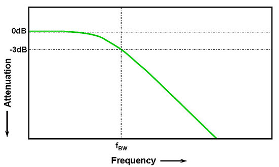 Полоса пропускания – важнейшая характеристика осциллографа, но что это такое? Полоса пропускания соотносится с аналоговой полосой пропускания аналогового внешнего интерфейса осциллографа и напрямую определяет способности прибора измерять сигналы. В точном определении, полоса пропускания осциллографа есть наивысшее значение частоты при амплитуде измеряемой синусоиды не ниже чем 3dB амплитуды синусоиды реального сигнала (то есть 70.7% истинной амплитуды сигнала), что также известно как -3dB точка отсечения по частоте. При повышении частоты сигнала, способность осциллографа точно воспроизводить его уровень снижается.