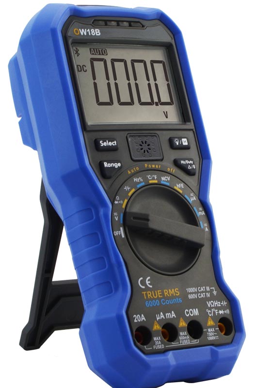 OW18 серия цифровых мультиметров, производства компании OWON предназначены для измерения AC/DC напряжения, AC/DC тока, сопротивления, ёмкости, температуры, частоты, а также тестирование диодов, бесконтактного детектирования высокого напряжения NCV и проверки цепи на проводимость. Мультиметры имеют разрядность 3 5/6 или 4 ½, базовую погрешность 0,5% или 0,1%, питание осуществляется батареей 9.0 В (тип 6F22), имеется функция измерения действующих среднеквадратичных значений (True-RMS) и Bluetooth интерфейс (модели B, E).
