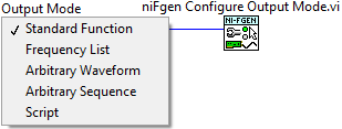 Поскольку эта форма сигнала определена как стандартная форма сигнала, генератор произвольных функций по-прежнему должен быть настроен на режим вывода стандартной функции при использовании режима настройки вывода.vi
