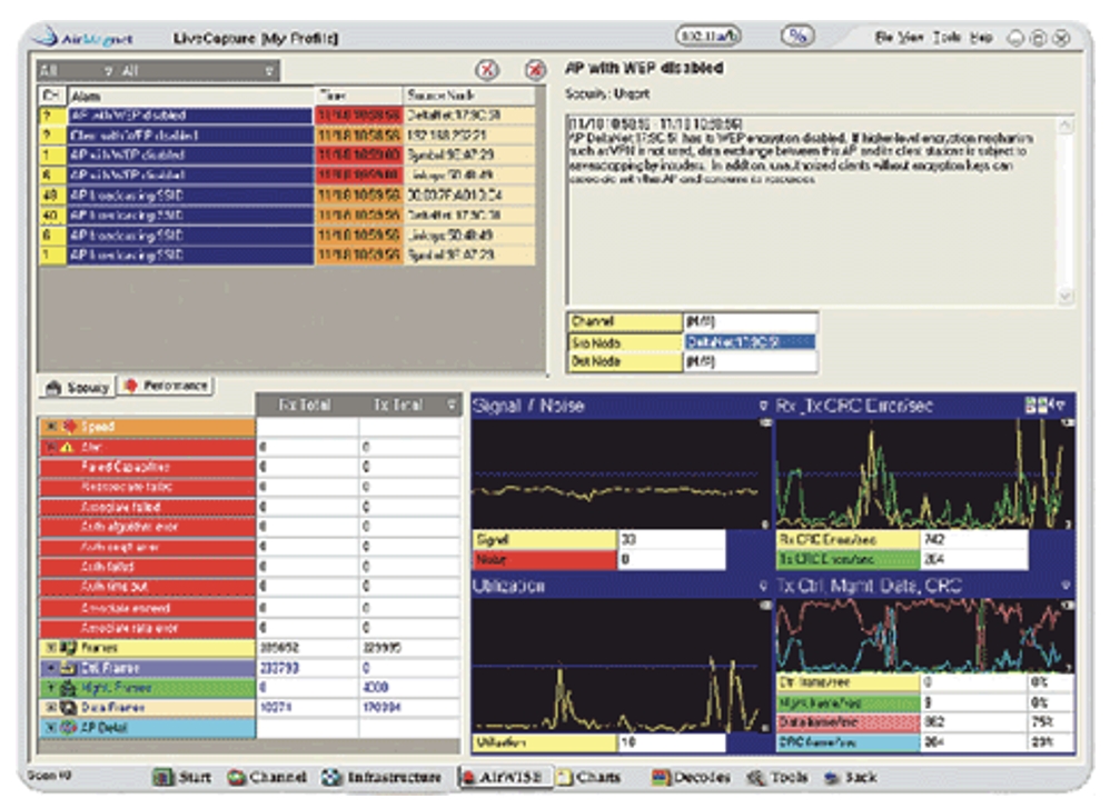 Большинство систем контроля с удаленным доступом просто собирают пакеты и пересылают их на дальний конец для обработки, бесполезно расходуя ценную полосу частот. Сенсоры AirMagnet, напротив, обрабатывают информацию на месте, пересылая уведомление об аварийных сигналах в режиме реального времени только в случае превышения установленных порогов. Информация о состоянии изменения данных во времени сохраняется в сенсорах и спокойно пересылается через регулярные интервалы времени в управляющий сервер, минимизируя рабочую загрузку сети и серверов.