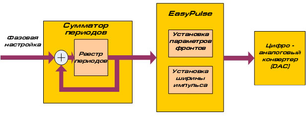 На сегодняшний день большинство генераторов сигналов при генерировании импульсов используют метод заполнения памяти DDS поточными данными импульса. Редактирование таблицы данных DDS формы сигнала позволяет получить на выходе импульс с разными фронтами. Типы фронтов и ширина импульса сигнала может настраиваться, используя точную настройку, и отличаются низким уровнем джиттера.
