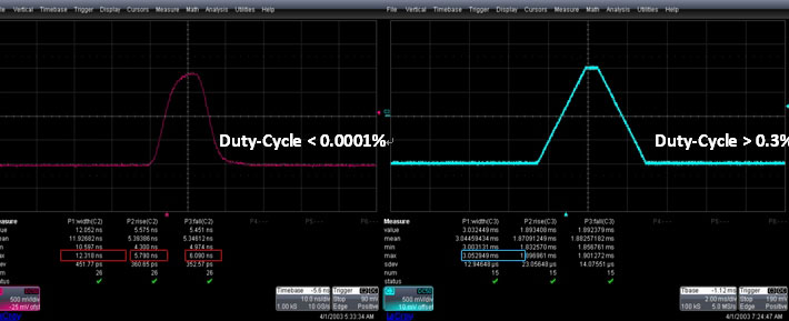 Рис.2 Сравнение коэффициентов заполнения импульсов при частоте низкой частоте 1 Гц.