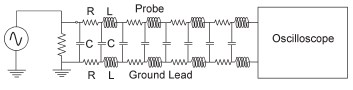 b. Распределённые R, L, & C для сигналов переменного тока (AC), пробник, заземляющий вывод