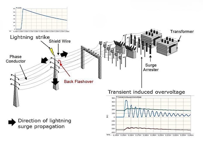 Рисунок 1. Прямой удар молнии и обратное перекрытие. (Кликните по изображению, чтобы увеличить) Изображения предоставлены PS CAD.