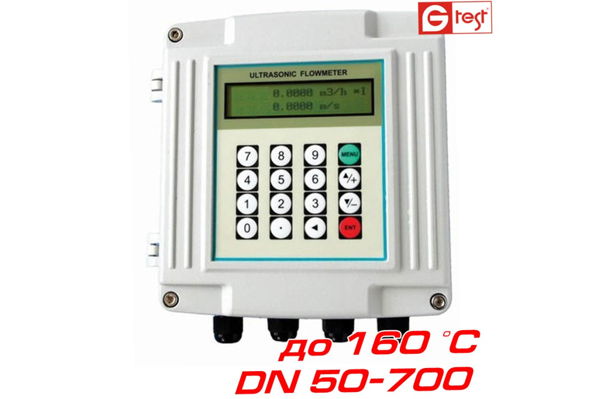 TUF2000S+TM1HT ультразвуковой расходомер с комплектом высокотемпературных накладных датчиков TM1HT расчитанном на трубы диаметром от 50 мм до 700 мм и температурным диапазоном жидкости от -30°С до 160°С.