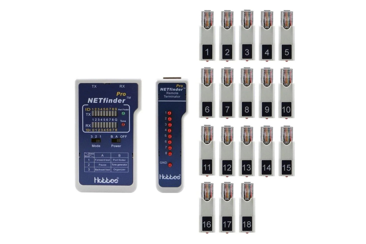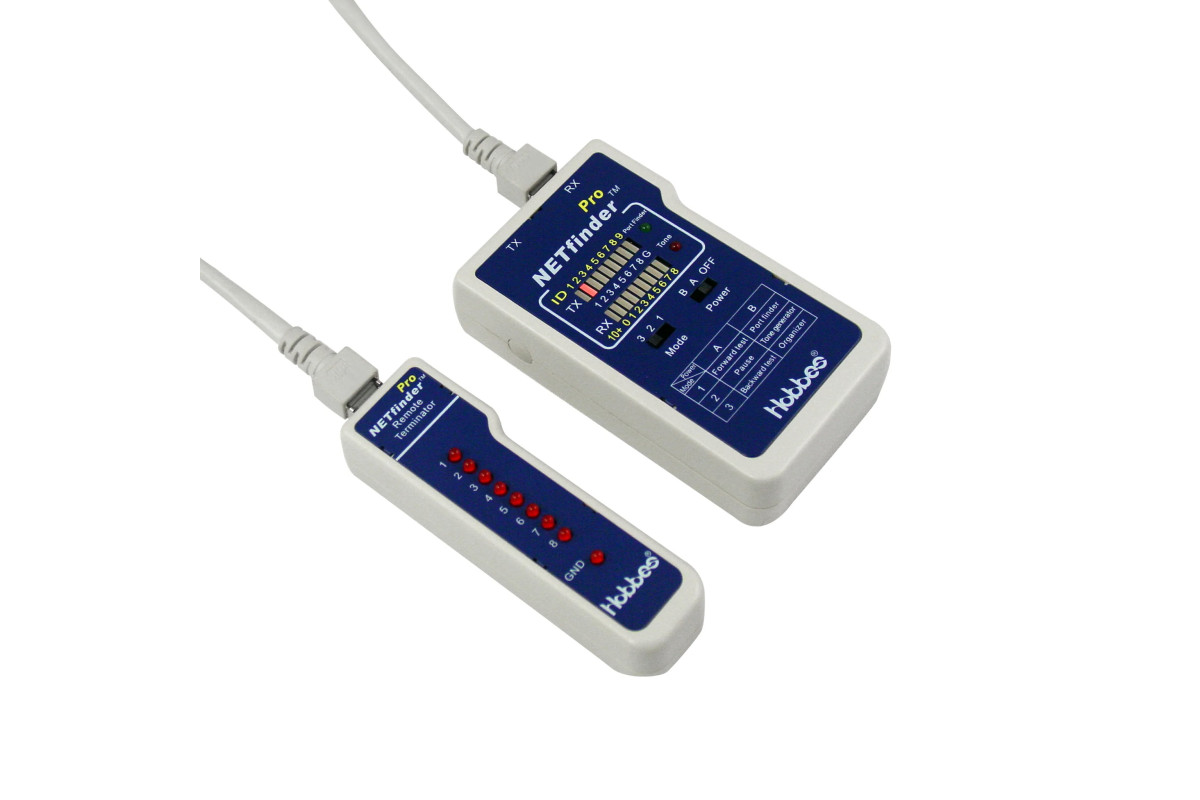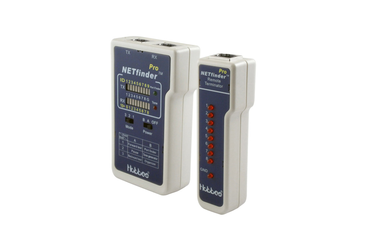 NETfinder Pro — це розширена версія NETfinder, розроблена для користувачів, які потребують додаткових віддалених ідентифікаторів. Ця професійна версія включає віддалений термінатор і 18 додаткових віддалених ідентифікаторів, що значно спрощує організацію кабелів для великих мережевих інфраструктур. Вона дозволяє користувачам легко ідентифікувати та зіставляти кабелі у 18 різних місцях. Вона дозволяє користувачам швидко визначати, знаходити, організовувати та перевіряти 18 стандартних голосових та інформаційних кабелів у мережі.