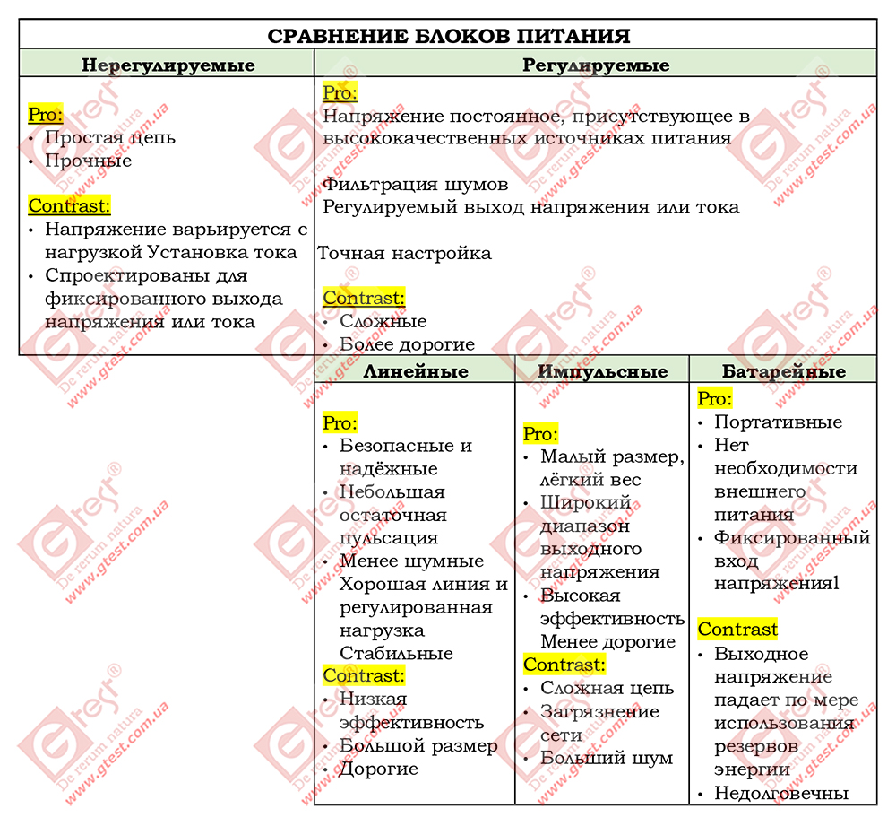 У таблиці 1 показано, як класифікуються типи джерел живлення, і підсумовано багато плюсів і мінусів кожного типу.