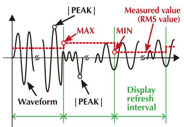 А оскільки він також може вимірювати пікові значення (PEAK), ви можете використовувати його для перевірки коливань на рівні пікового значення.