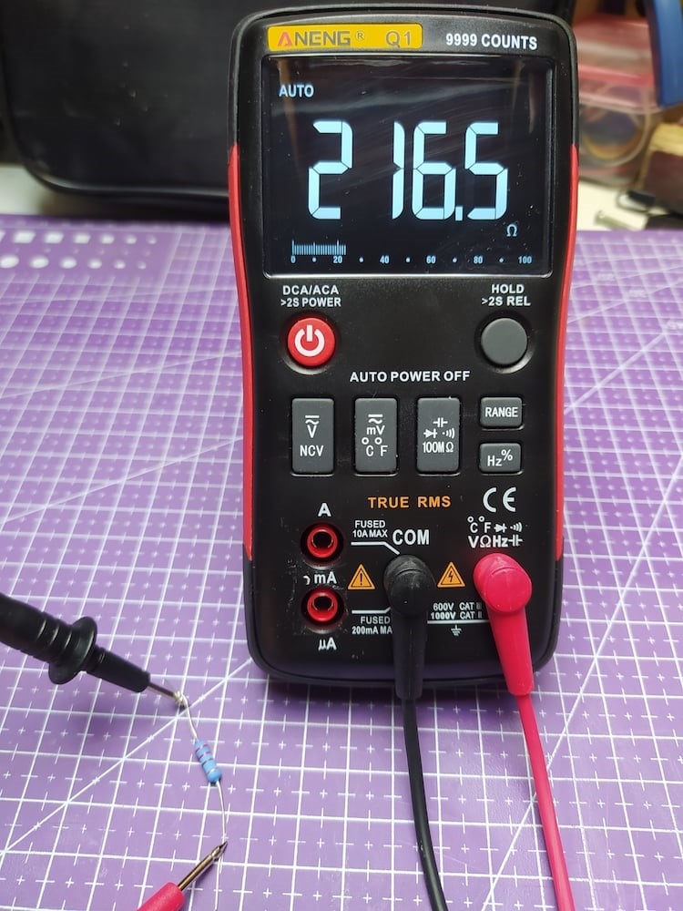 Якщо ви коли-небудь поралися з електронікою, ви напевно стикалися з використанням резисторів. На резисторах є смужки різних кольорів, якими можна розшифрувати значення резистора в омах. Це захоплююче заняття, і його варто вивчити, але воно також може зайняти деякий час, особливо якщо у вас є проект з великою кількістю резисторів, які потрібно відсортувати. Цифрові мультиметри здатні вимірювати опір, а деякі цифрові мультиметри є автоматично діапазонними, цей тип особливо корисний, оскільки ви можете підключити щупи до будь-якого кінця резистора будь-якого номіналу, і він буде змінювати діапазон, щоб дати вам правильне значення. Цифрові мультиметри без автоматичного діапазону мають окремі налаштування, які також потрібно перемикати для кожного діапазону значення опору, тому часто вам потрібно приблизно знати, чи опір всього кілька Ом або кілька мільйонів Ом. Цифрові мультиметри з автоматичним діапазоном зараз дуже поширені і доступні в бюджетному сегменті мультиметрів, тому якщо це ваш перший вимірювач, обов'язково шукайте цю функцію.