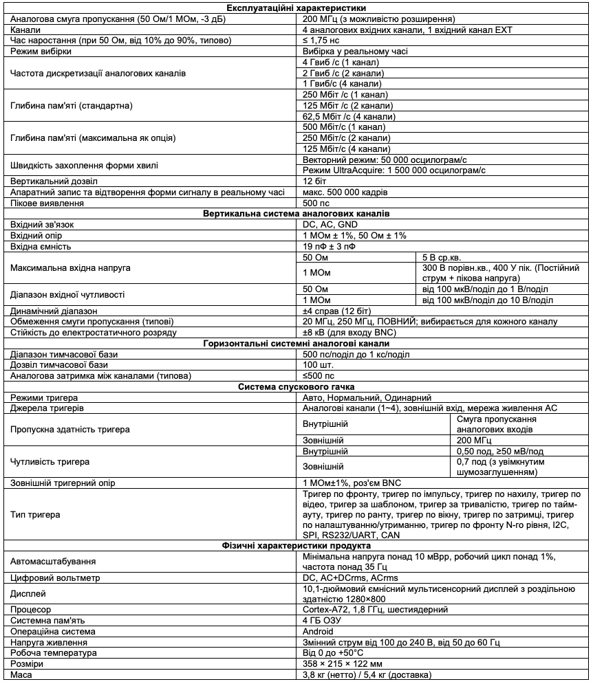 • Смуга пропускання аналогового каналу 200 МГц