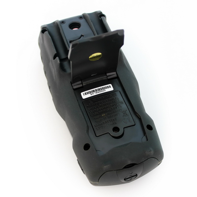 Корпус тепловізора виготовлений з нековзного пластику, за технологією подвійного лиття, коли використовується два типи пластмаси – перший більш міцний, а другий, як правило - зовнішній, що має антиковзні амортизуючі властивості. У випадку з DT-898 застосовано саме цю технологію. На задній кришці передбачені пази для кріплення щупів мультиметра, що зручно при зберіганні та перенесенні поза пластиковим кейсом, в якому він поставляється. Упор, для установки на стіл, підпружинний тому він фіксується в крайніх положеннях. У відсіку батареї знаходиться літієвий акумулятор - 3,7В, ємністю 1,4 А / год. зарядка якого виконується через usb-роз'єм, який надійно закривається пластиковою кришкою із замком. Об'єктив тепловізора закривається шторкою із чіткою фіксацією положень. Рекомендується завжди закривати шторку, коли функція тепловізора не задіяна. Для роботи в місцях з недостатнім освітленням, на верхньому торці вбудований ліхтарик на основі надяскравого світлодіода – світить дуже яскраво. Постачається тепловізор у компактному пластиковому кейсі з ложементами для тепловізора, щупів мультиметра та USB-кабелю зарядки – погодьтеся що зберігати/переносити професійні прилади так набагато зручніше.