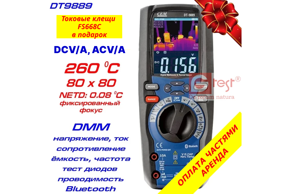 DT9889 - тепловізор з функцією професійного мультиметра, виробництва компанії CEM everbest . Призначений для забезпечення вимірювань в електричних мережах, електроніці виконання інспекції температурних режимів електричних та електронних пристроїв та систем, пошук місць витоку тепла та інших температурних аномалій.