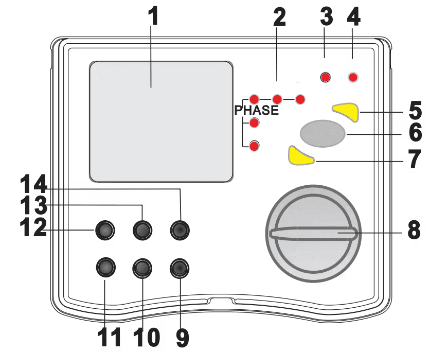 2. Світлодіодні індикатори вимірювання послідовності фаз (CW CCW, L1, L2 і L3)