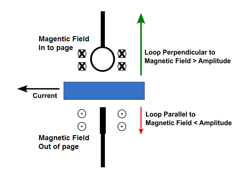 - Пробники магнітного поля при розміщенні перпендикулярно до магнітного поля вимірять більшу амплітуду, ніж розташовані паралельно в магнітному полі.