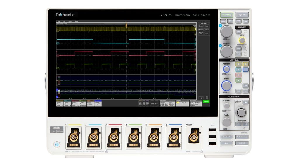 MSO 4 серії забезпечує кращу видимість у складних системах, пропонуючи чотири- та шестиканальні моделі з 13,3-дюймовим дисплеєм високої чіткості (1920 x 1080). Цей осцилограф дуже зручний для користувача завдяки простому у використанні інтерфейсу та ємнісному сенсорному екрану.