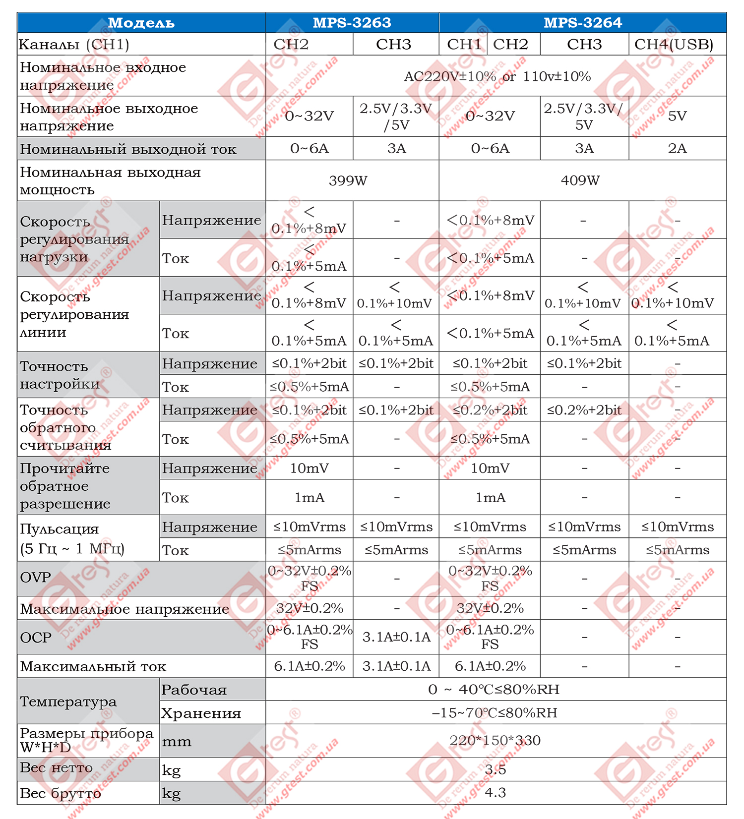 MPS-3263, MPS-3264 триканальне джерело живлення постійного струму