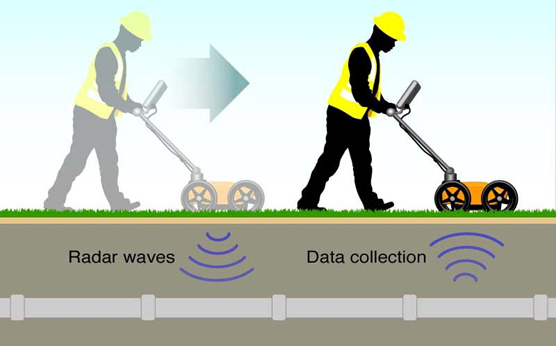 Георадар (GPR) - це технологія, яка може бути використана для виявлення та визначення розташування труб підігріву підлоги. Георадар працює, посилаючи електромагнітні хвилі, які проникають у землю і відбиваються назад, коли вони потрапляють на об'єкт. Потім хвилі виявляються приймачем, що створює карту підземних об'єктів.