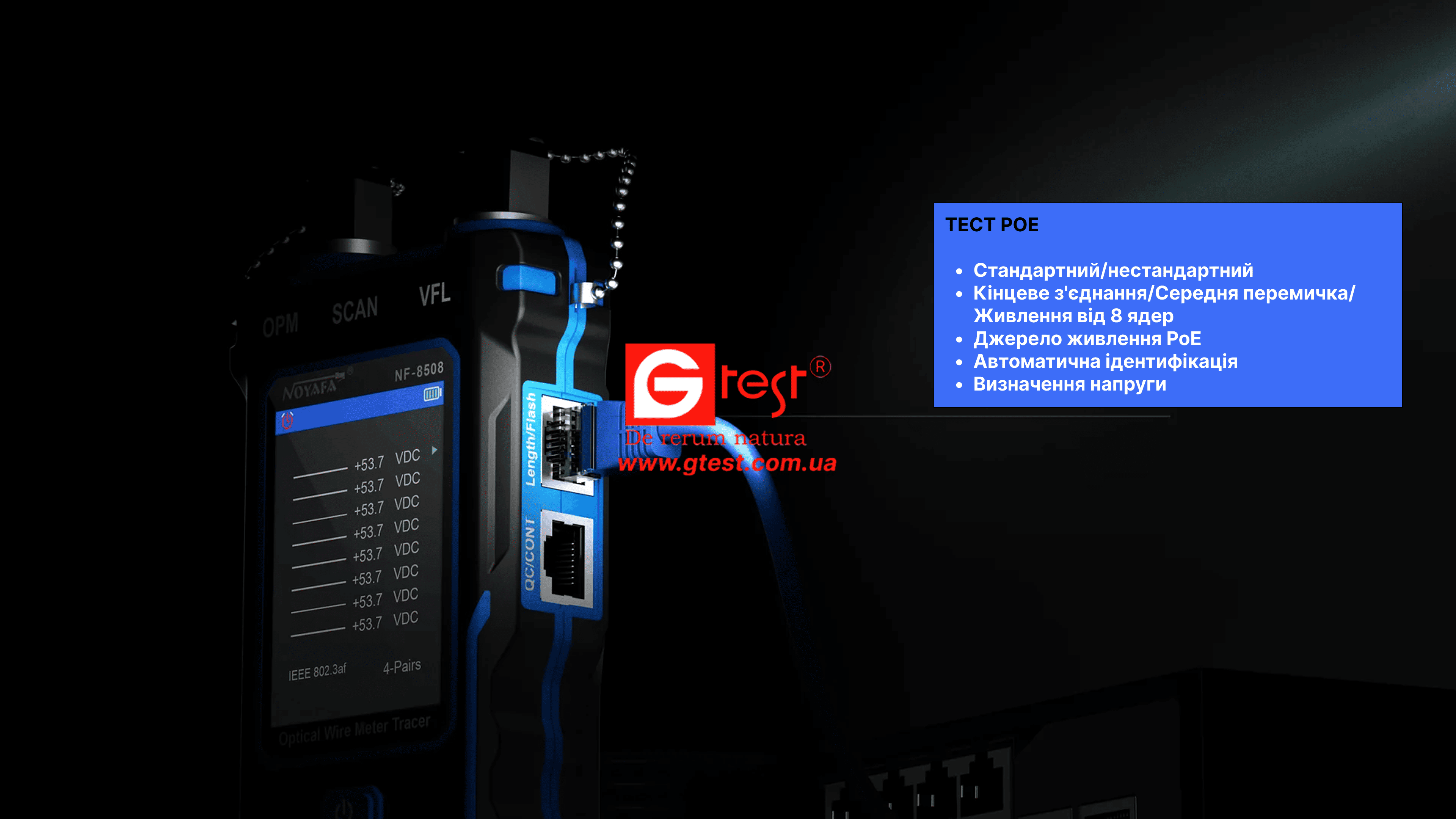 • Комплексне тестування PoE: визначає конфігурації, напругу та полярність PoE, підтримує нестандартні стандарти та стандарти IEEE 802.3AF/AT, надаючи вам повну діагностику живлення для сучасних мереж.