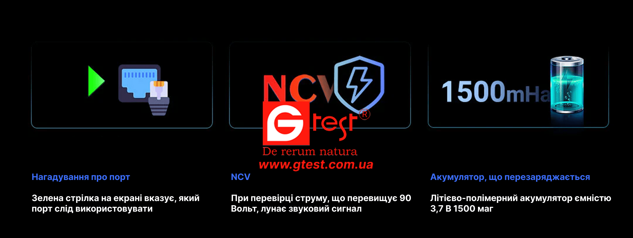 • Безконтактне виявлення напруги (NCV): забезпечує електробезпеку, виявляючи дроти та електроустаткування, що знаходяться під напругою, допомагаючи уникнути потенційних небезпек, пов'язаних з електрикою.