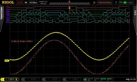 Рисунок 3. Вихід ЦАП та 8-бітна вхідна шина даних, що активуються за цифровою схемою