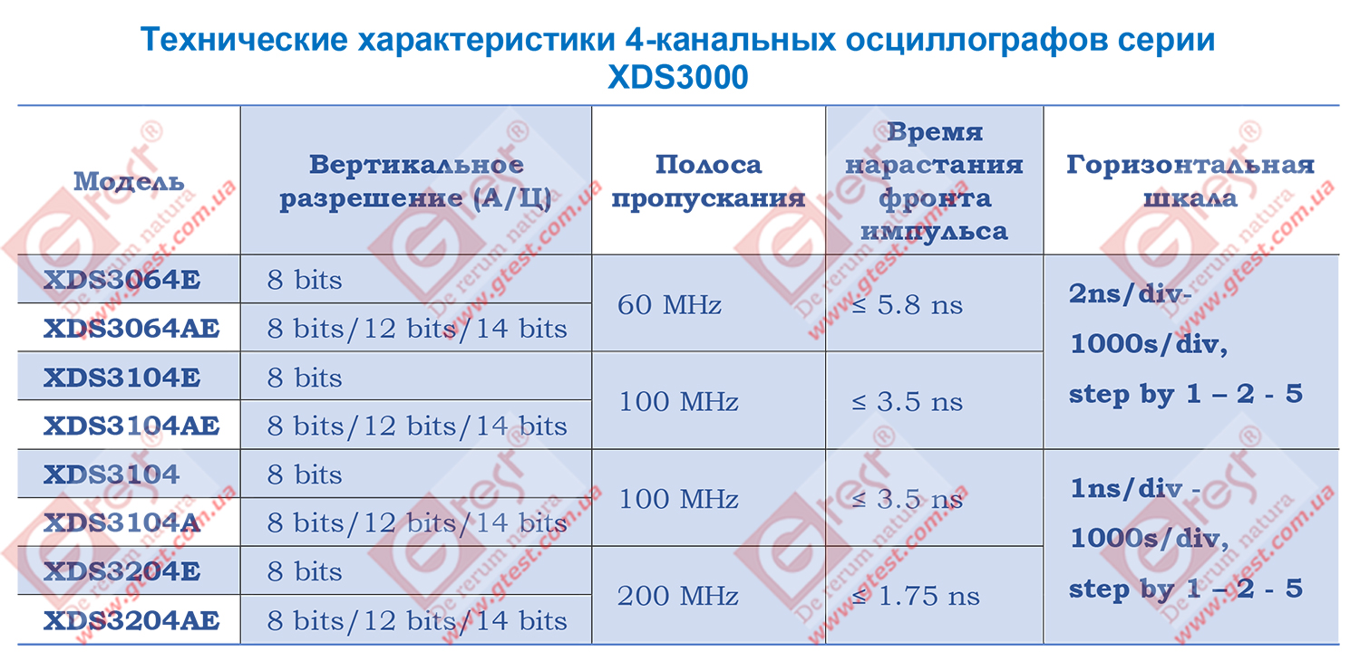 * Для XDS3104(A) та XDS3204(A)E максимальна частота дискретизації (в реальному часі) для двоканальної версії повинна відповідати наступній умові: