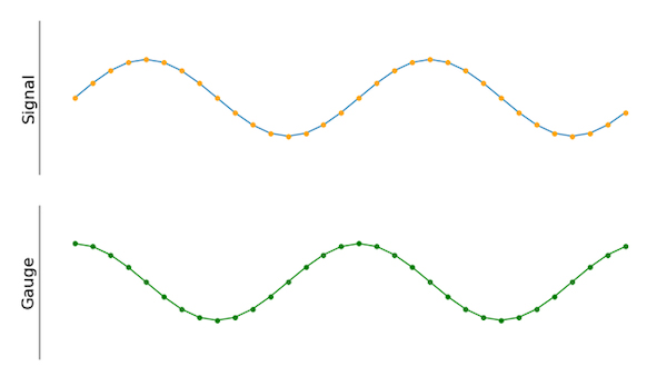 уявити вхідний та вимірювальний сигнал як дискретні вхідні масиви однакової