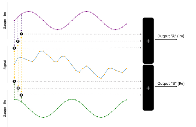 зі зсувом по фазі на 90 градусів щодо датчика, вихідний сигнал вищезазначеного