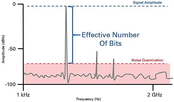 У цьому прикладі рівняння показує, що роздільна здатність АЦП осцилографа має становити не менше 8,33 біт. Визначення необхідного дозволу виміру у системі — це лише з кроків до розуміння деталей. Рівняння не свідчить, що еквівалентне число біт дозволу має значення. Це число зазвичай дещо менше числа даних, що надаються АЦП.