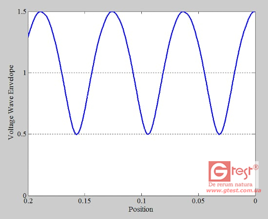 амплітуда хвилі напруги вздовж лінії. Ця зміна амплітуди найкраще показана