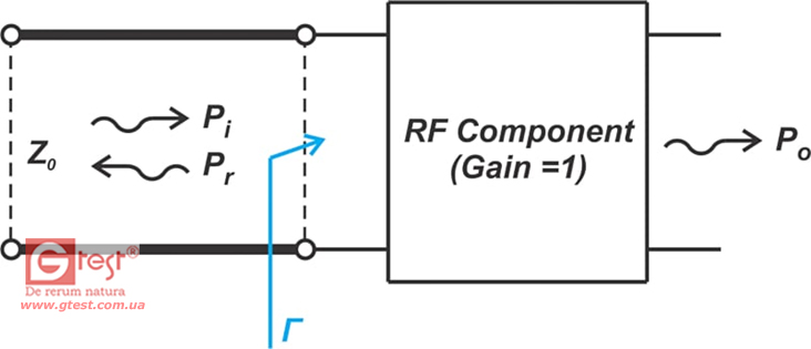 коефіцієнт відображення, що «дивиться» на вхід ВЧ-компонента, дорівнює Γ.