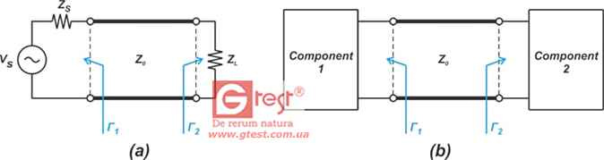 підключаємо джерело до навантаження через лінію передачі (рис. 7(а)), а також