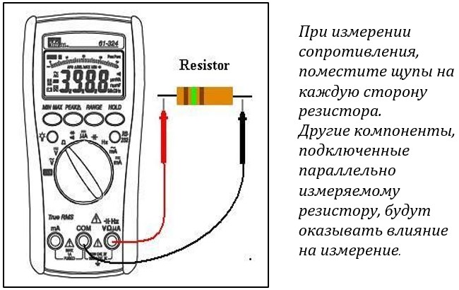 Коли ви вперше поміщаєте вимірювач у функцію (Ω ), вимірювач видасть на дисплеї OL або 1, що означає нескінченне показання. Важливо, щоб при вимірі опору ланцюг був знеструмлений або вимкнений, інакше ланцюг може пошкодити вимірювач. Більшість вимірювальних приладів мають захист від перевантаження на всіх діапазонах, щоб запобігти цьому, але ви повинні перевірити характеристики вашого цифрового мультиметра, щоб переконатися.