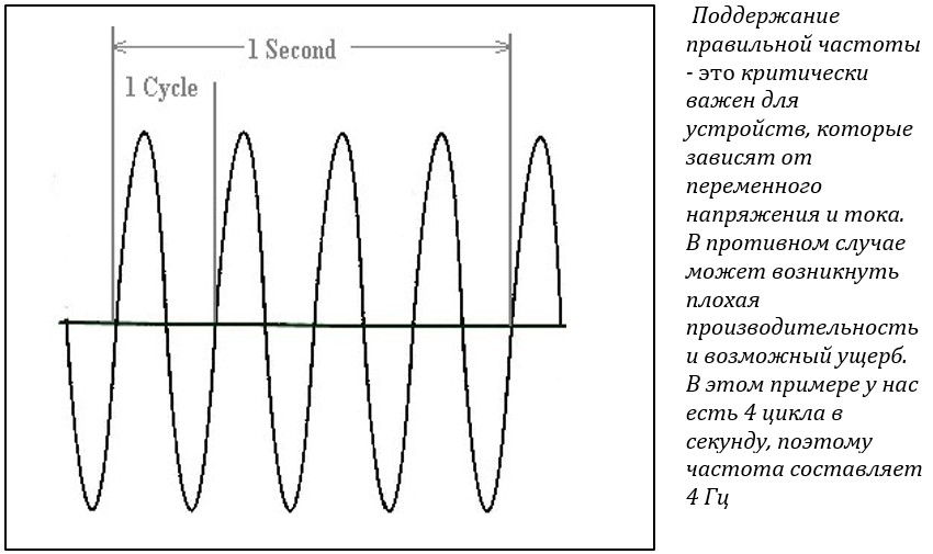Частота вимірюється у Герцах. Це число циклів в секунду змінного сигналу для завершення одного циклу або переходу від 0 до максимальної позитивної амплітуди назад до 0 до максимальної амплітуди негативної потім назад до 0.