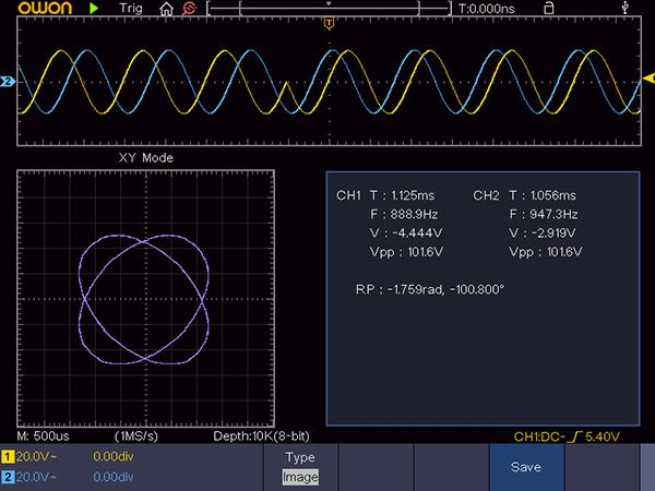 для більшості інженерів. OWON забезпечує режим XY. Інтерфейс налаштування