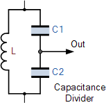 Центральне відведення підсхеми контуру виконано на стику мережі «ємнісного дільника напруги» для подачі частини вихідного сигналу назад на емітер транзистора. Два послідовно з'єднані конденсатори створюють зсув фази на 180 гр., що інвертується ще на 180 гр., для створення необхідного позитивного зворотного зв'язку. Частота коливань, яка є більш чистою синусоїдальною напругою, визначається резонансною частотою контуру контуру.