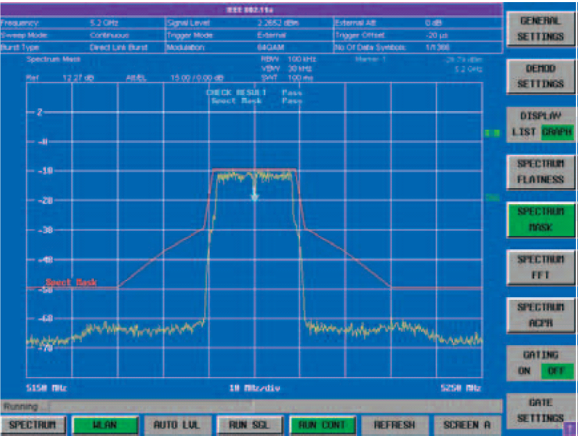 Прошивка аналізаторів спектру R&S FSQ-K91 для застосування у WLAN розширює області застосування аналізатора сигналів R&S FSQ вимірюваннями спектру та параметрів модуляції сигналів відповідно до WLAN стандартів IEEE 802.11a/b/g/j. Виняткові можливості R&S FSQ в аналізі та оцінці, які дозволяють задавати стандарти у вимірах, роблять його ідеальним у розробці та налагодженні. Аналізатор спектру R&S FSP з опцією FSP-K90 має приємну ціну як інструмент для вимірювання у виробництві. Наприклад, один інструмент може бути використаний для вимірювань EVM у сигналах OFDM (IEEE 802.11a/g-OFDM) і при цьому для спектральних вимірювань сигналів QPSK (IEEE 802.11b). Використовуючи запантетований метод, R&S FSP оцінює несучі від –14 до +14 зі смугою демодуляції 8 МГц та визначає параметри модуляції сигналів IEEE 802.11a/g-OFDM.