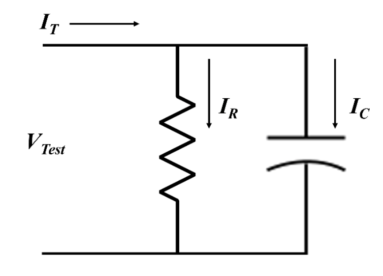 Що, якщо натомість використовувати постійний струм? Частота (f) дорівнює 0 Гц, XC нескінченна, а IC дорівнює 0, тому вимірюваний струм витоку IT = IR, тим самим це не призведе до помилок.