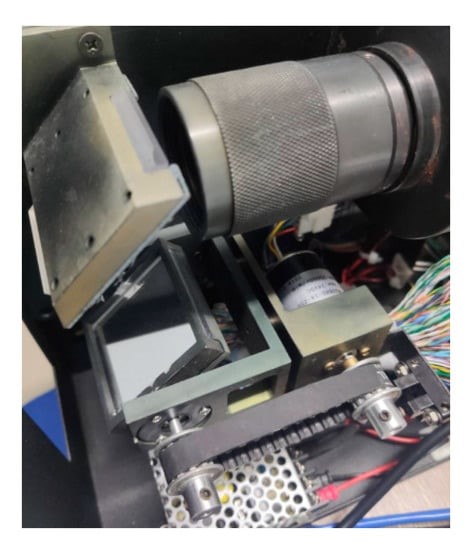 Двигун рухає двостороннє дзеркало, обертаючись за годинниковою стрілкою через конвеєрну стрічку, і реалізує функцію поздовжнього сканування мети за допомогою обертання дзеркала. Модель двигуна – WS2845-24-250-1, а швидкість – 25 000 об/хв. Окуляр над дзеркалом, що обертається, використовується для фокусування і точного спостереження.