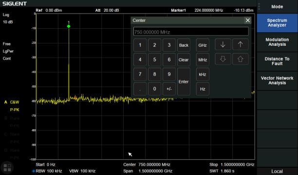 - Діапазон частот аналізатора спектру від 9 кГц до 1,5 ГГц / 2,1 ГГц / 3,2 ГГц / 7,5 ГГц