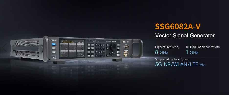 Векторний генератор сигналів SSG6082A-V забезпечує діапазон вихідних частот від 9 кГц до 8 ГГц. Він підтримує аналогову модуляцію AM, FM та PM, а також функції імпульсної модуляції та генератора імпульсної послідовності. Він оснащений внутрішнім джерелом базової смуги IQ зі смугою пропускання 500 МГц, який у поєднанні із програмним забезпеченням SigIQPro для ПК може генерувати загальні цифрові модульовані сигнали та сигнали протоколів зв'язку, такі як 5G NR, WLAN, LTE, BLUETOOTH та IOT. Після заводського калібрування вихідний сигнал RF демонструє чудові характеристики широкосмугового зв'язку 1 ГГц та хороші показники ACPR, що робить його придатним для різних додатків у галузі досліджень та розробок, виробництва та інших сценаріїв.