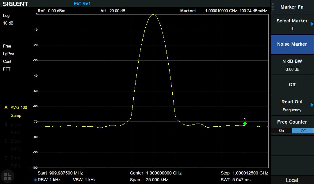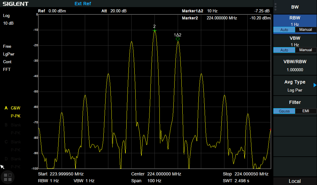 - 1 Гц Мінімальна смуга пропускання роздільної здатності (RBW)