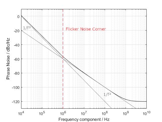 У той час як безшумний коливальний контур виробляє ідеальний періодичний сигнал, фундаментальні фізичні шумові процеси, такі як тепловий шум або коливальний шум викликають зміни фази генератора. Фазовий шум визначається як величина частотної області, пов'язана з щільністю спектральної потужності цих статистичних фазових зрушень. Через спосіб перетворення шуму пристрою на фазовий шум, типовий спектр фазового шуму може бути описаний рівнянням Лісона: У той час як на високочастотних компонентах спостерігається постійний рівень шуму, при русі до низькочастотних компонентів фазовий шум спочатку зростає з залежністю 1/f², а починаючи зі специфічної для схеми кутової частоти коливального (флуктуаційного) шуму.