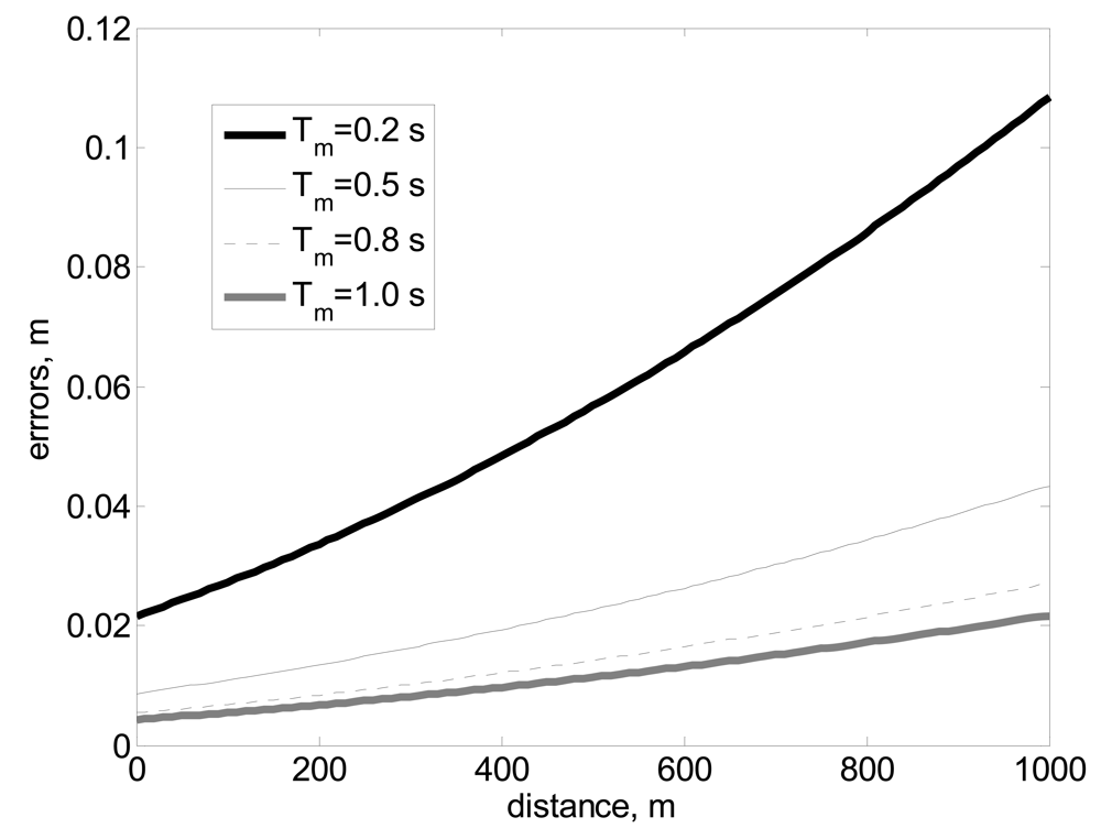Рисунок 3. Залежність відстані від помилок залежно від часу вимірювання Tm за секунди.