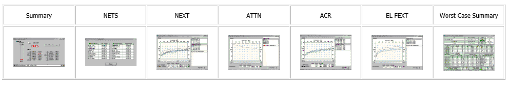 У наведеному нижче прикладі діапазон частот тестування систем класу D ITT NS&S становить 160 МГц, при цьому кожен з параметрів покращений на кілька децибел. Це дозволяє збільшувати довжину каналів та кількість роз'ємних з'єднань. Результат, показаний малюнку 8, цікавий тим, що тест не пройдено з обмеження наведень, але лінія забезпечує якісну роботу всіх протоколів. Результат збережено у графічному вигляді, що полегшує аналіз.