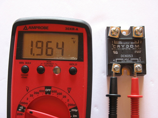 Функція приладу перевірки діодів, як і раніше, може працювати на різних вихідних твердотільних реле постійного струму. Коли реле вимкнено, вихід відкритий і показує дуже велике падіння напруги.