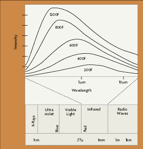 Інфрачервоне випромінювання – це та частина електромагнітного спектру, що знаходиться за межами видимого (від синього до червоного, 0,4-0,75 мкм) відгуку людського ока. Довжина ІЧ-хвилі простягається від 0,75 мкм до 1000 мкм, де починаються найкоротші мікрохвилі (радар). Оскільки ІЧ-випромінювання генерується переважно теплом, його називають тепловим випромінюванням. Для безконтактних термометрів важливі лише частини ІЧ-спектру. Спектр часто поділяють на «атмосферні вікна», які забезпечують максимальне пропускання без втрат через водяну пару в повітрі: 0,7-1,3 мкм; 1,4-1,8 мкм; 2,0-2,5 мкм; 3,2-4,3 мкм; 4,8-5,3 мкм; 8-14 мкм