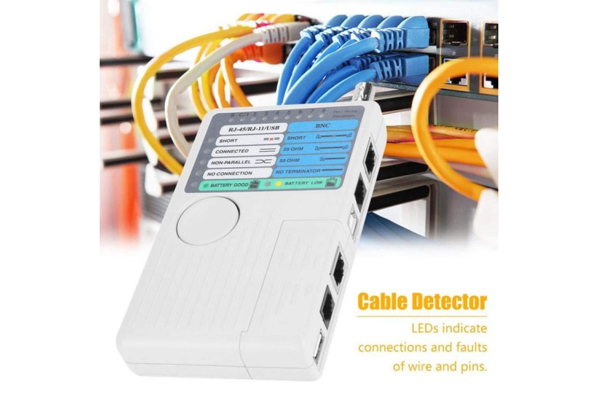 Цей зручний кабельний тестер є незамінним для всіх, хто регулярно працює з мережевими кабелями. За допомогою цього тестера ви можете легко перевірити з'єднання та стан ваших кабелів, що дозволить вам швидко виявити та вирішити будь-які проблеми.