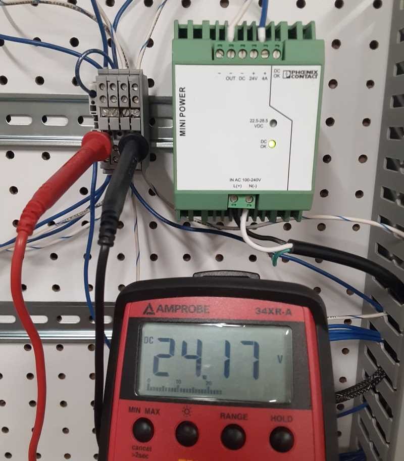 Малюнок 3. Цифровий мультиметр (DMM), що використовується для вимірювання промислового джерела живлення на 24 В.