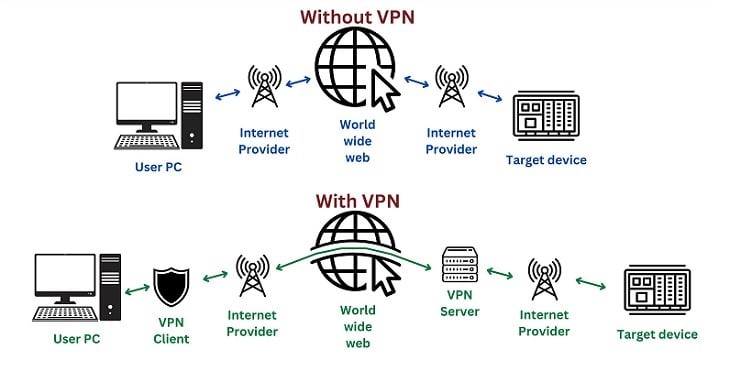 У більш формальній термінології ми могли б сказати, що VPN є приватною мережею, створеною в рамках загальнодоступної мережевої інфраструктури, такої як глобальний Інтернет. Підприємства можуть використовувати VPN для безпечного підключення віддалених об'єктів та віддалених користувачів з використанням економічно ефективного стороннього доступу до Інтернету замість дорогих виділених з'єднань WAN або віддалених комутованих з'єднань на великі відстані.
