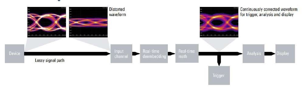 Малюнок 8. Осцилографи з аналоговими тригерами застосовуються для вилучення сигналу, що тільки відображається, а не до тригера. В осцилографі R&S RTP вилучення в реальному часі застосовується перед запуском, що дозволяє запускати той самий сигнал, який користувачі бачать на екрані осцилографа.